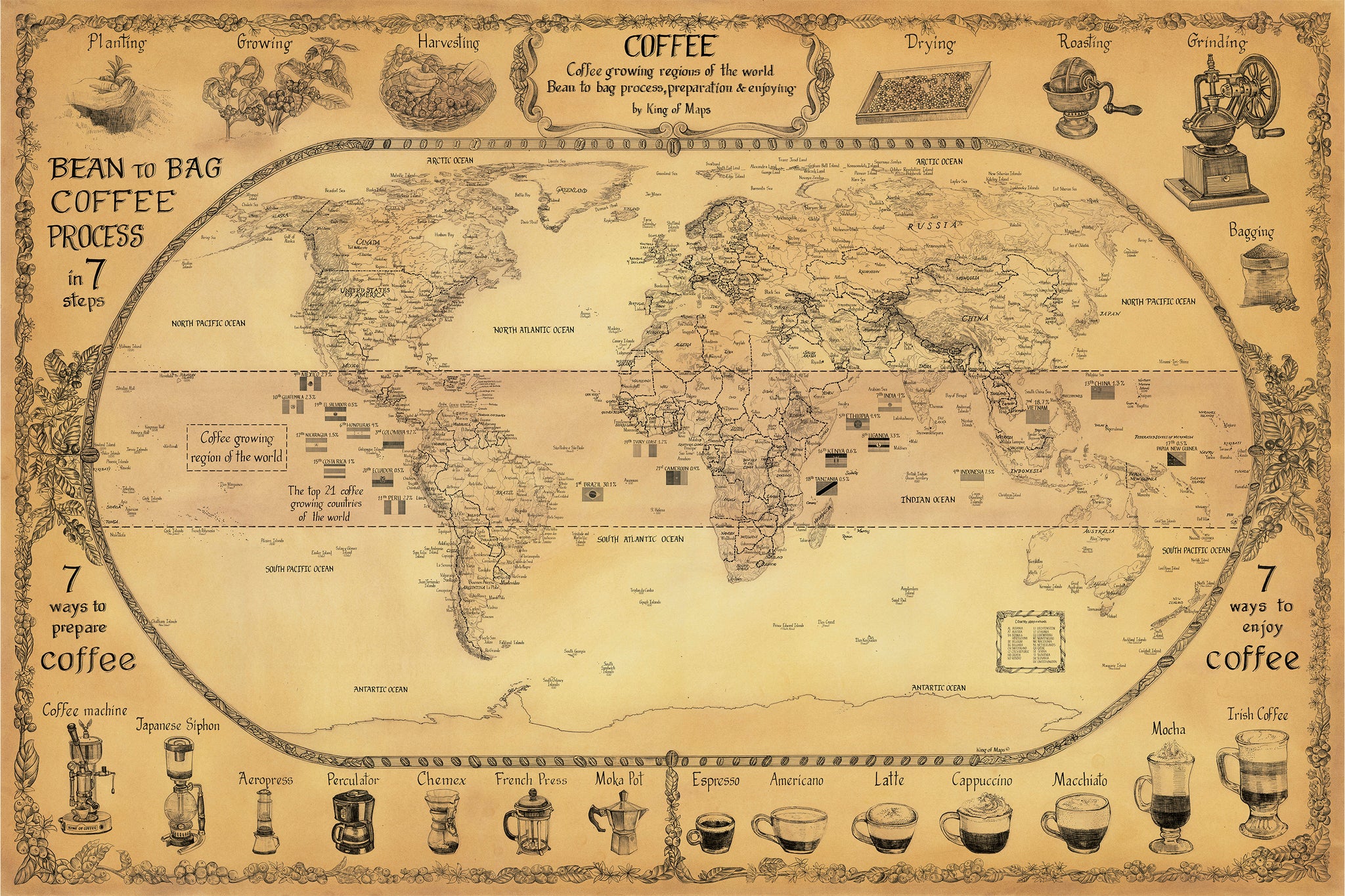 Coffee Map Of The World – Coffee is more than just a drink. It is a global phenomenon that has shaped history, culture, and society for centuries. But how did this humble bean become the world’s most popular beverage? The . The method for making Turkish coffee is the oldest in the world, dating back to the sixteenth century. The beans are ground super fine and boiled with water and sugar in a small copper or brass .