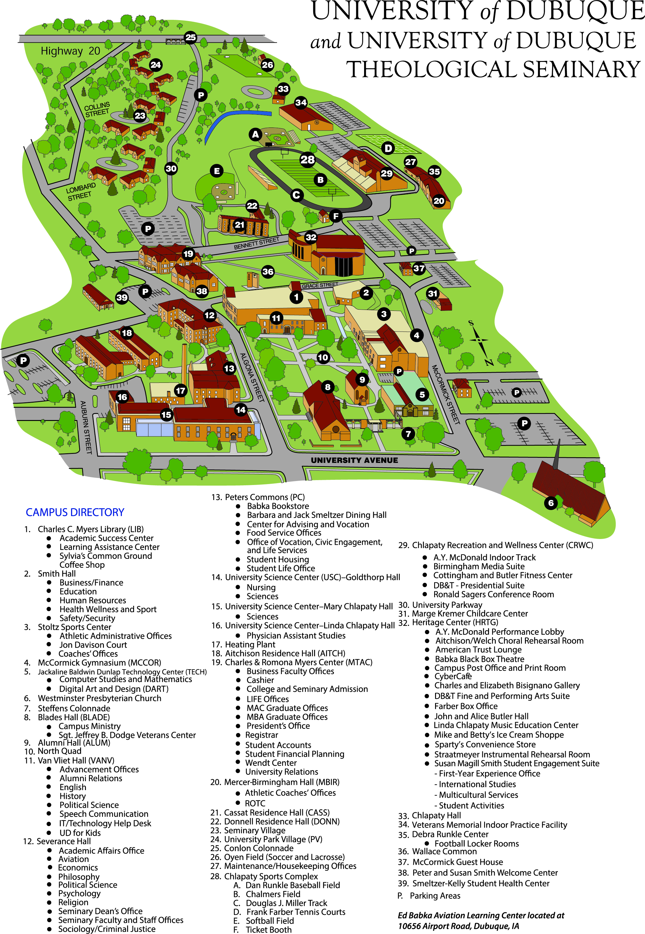 University Of Dubuque Campus Map – University Relations’ Web Operations team created and maintains the UAB Campus Map website. Please use the “Feedback” button in the lower left to inform us of needed corrections or to tell us what you . The University moved to its current West Haven campus in 1960, and we also have campuses in Orange, Conn. and Prato, Italy. On this page, you can find more information about each of our campuses, as .